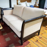| Materiales: | Tela/Estructura y patas madera de pino/Barniz Negro/Hule espuma 27kg |