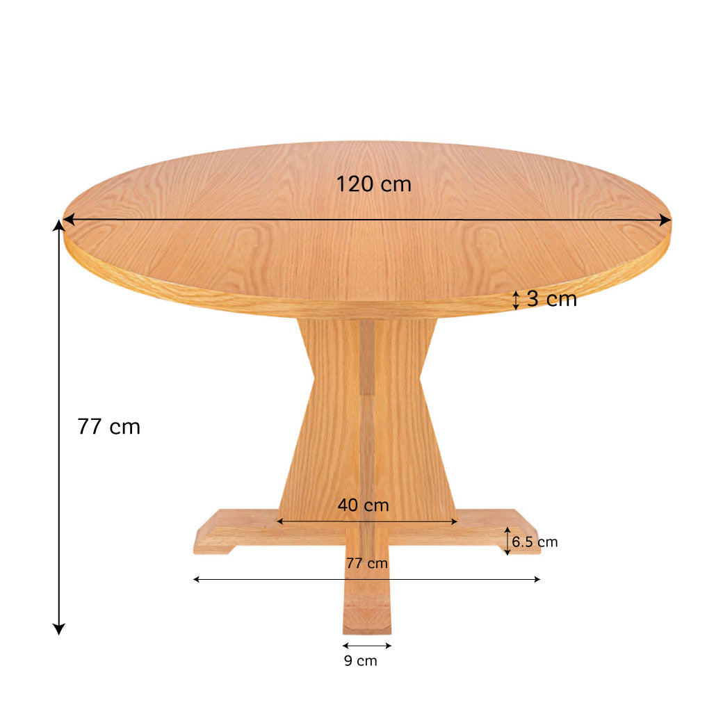 8 días para devolución   Medidas: • Diámetro: 119.5 cm • Ancho cubierta: 3 cm • Alto: 77 cm Materiales: chapa de encino / encino macizo / Barniz Tiempo de...